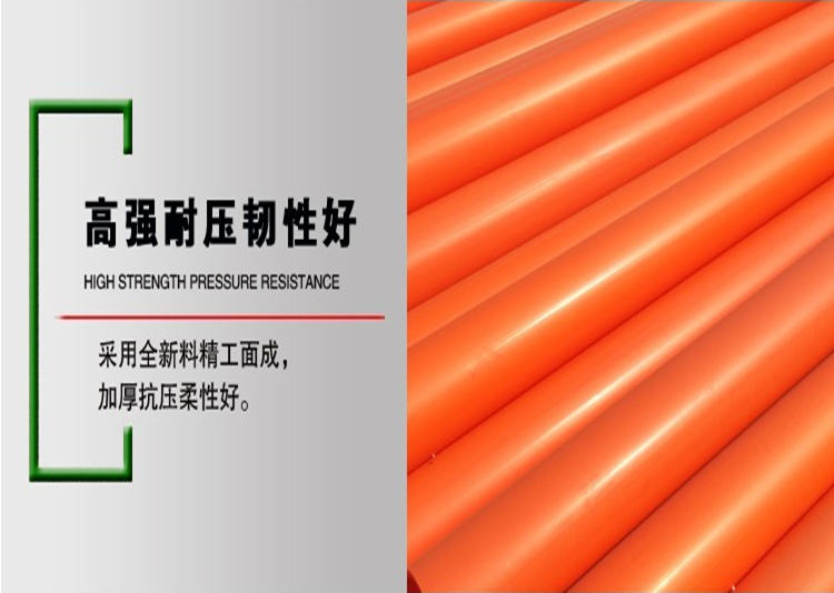 C-PVC电力管重量轻、强度高、施工敷设方法简捷,能实现夜间开挖埋设,回填路面,白天可以照常通车;采用弹性密封橡胶圈承插式连接,安装连接方便、快捷、连接密封性能良好,能防止地下水的渗漏,有效保护电力电缆的使用安全。
